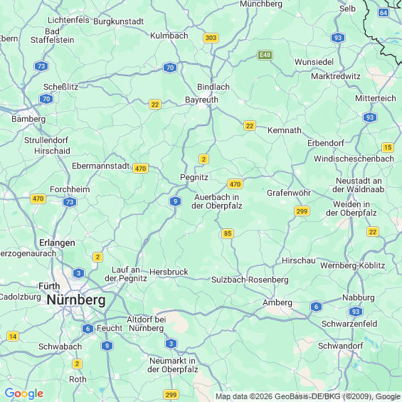 Städte in der Nähe von Auerbach in der Oberpfalz