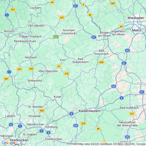 Städte in der Nähe von Bärenbach Bad Kreuznach