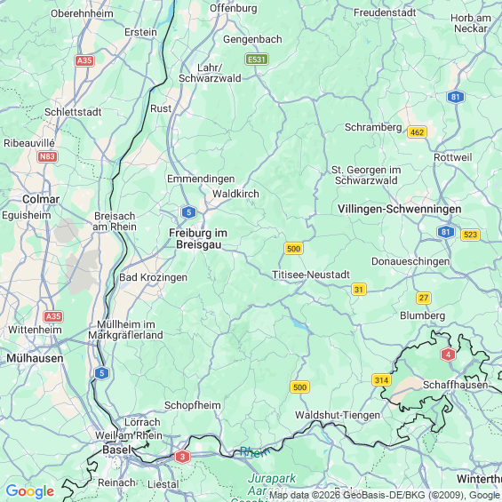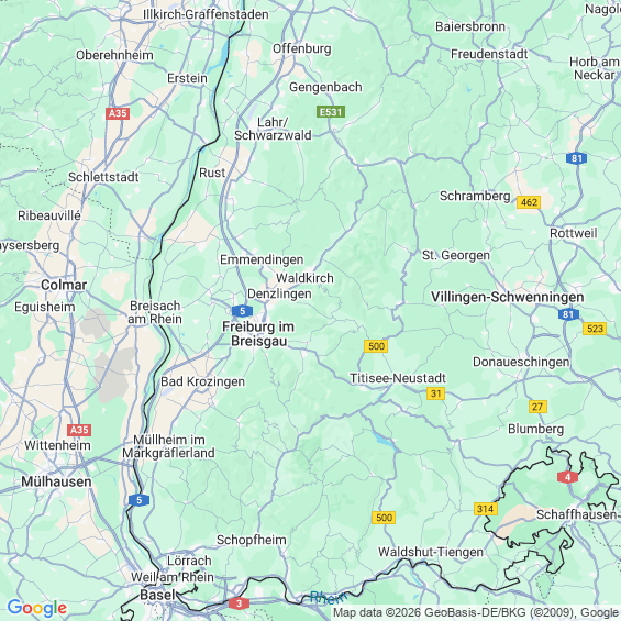 Städte in der Nähe von Freiburg im Breisgau