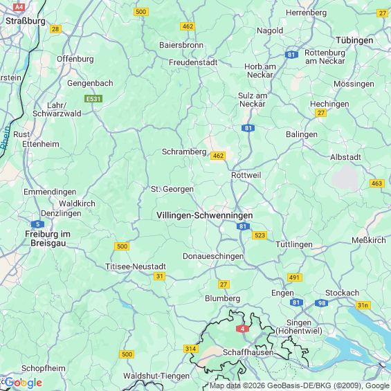 Städte in der Nähe von Villingen-Schwenningen