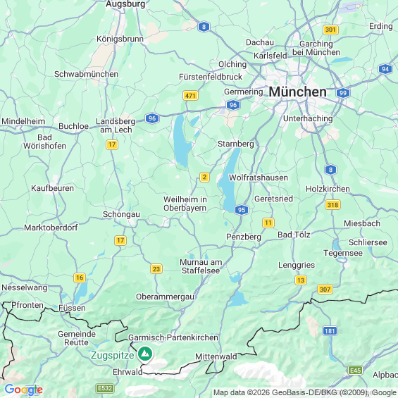 Städte in der Nähe von Weilheim in Oberbayern